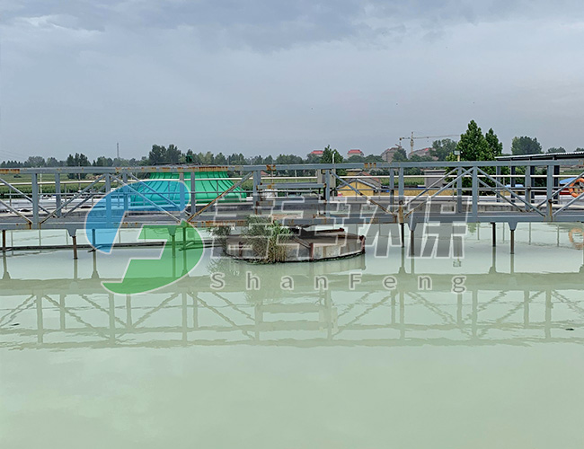 中心傳動驅(qū)動機構(gòu)推動刮泥機構(gòu)沿中心旋轉(zhuǎn),固定于刮臂上的刮板將泥由池邊逐漸刮至池中心的集泥斗中。刮泥板曲線對數(shù)螺旋線形,受力均勻,刮泥干凈,當(dāng)池底遇有障礙時,能自動提耙,保護機器不受傷害,驅(qū)動機構(gòu)可有扭矩保護裝置,工作更加安全。