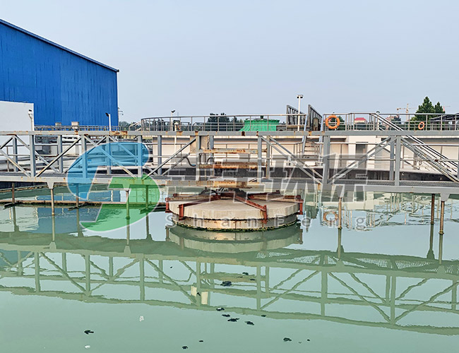 中心傳動(dòng)驅(qū)動(dòng)機(jī)構(gòu)推動(dòng)刮泥機(jī)構(gòu)沿中心旋轉(zhuǎn),固定于刮臂上的刮板將泥由池邊逐漸刮至池中心的集泥斗中。刮泥板曲線對(duì)數(shù)螺旋線形,受力均勻,刮泥干凈,當(dāng)池底遇有障礙時(shí),能自動(dòng)提耙,保護(hù)機(jī)器不受傷害,驅(qū)動(dòng)機(jī)構(gòu)可有扭矩保護(hù)裝置,工作更加安全。