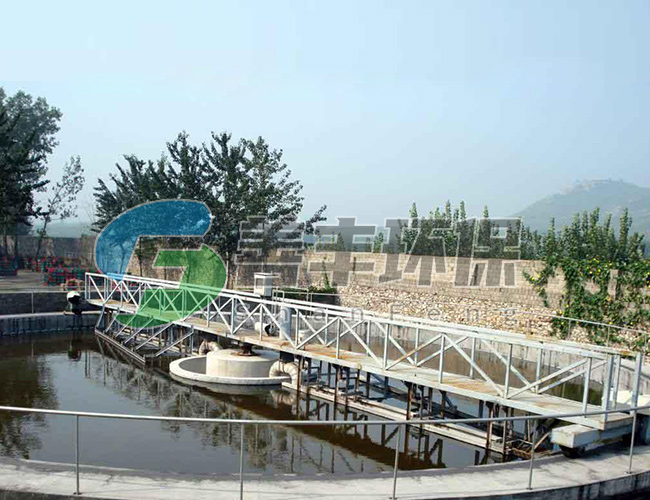 中心傳動驅(qū)動機構(gòu)推動刮泥機構(gòu)沿中心旋轉(zhuǎn),固定于刮臂上的刮板將泥由池邊逐漸刮至池中心的集泥斗中。刮泥板曲線對數(shù)螺旋線形,受力均勻,刮泥干凈,當池底遇有障礙時,能自動提耙,保護機器不受傷害,驅(qū)動機構(gòu)可有扭矩保護裝置,工作更加安全。